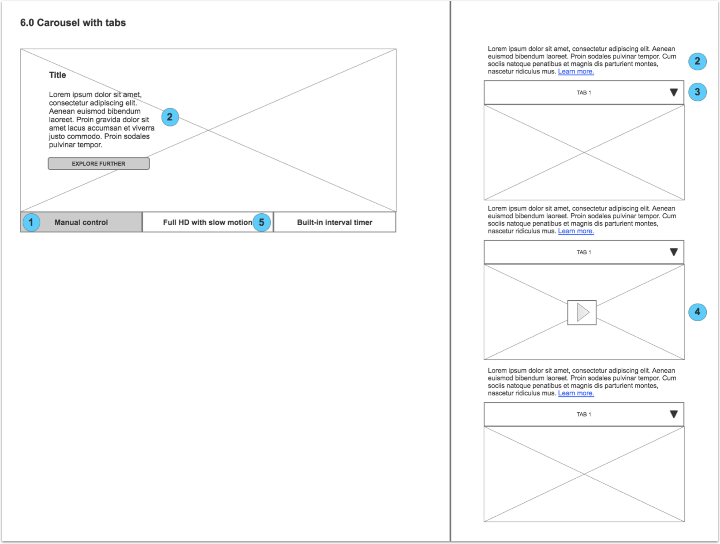 I created multiple sets of wireframes for the key sub-pages and components. I took the mobile-first approach when defining responsive modules while ensuring to showcase the cameras and their features to the fullest.